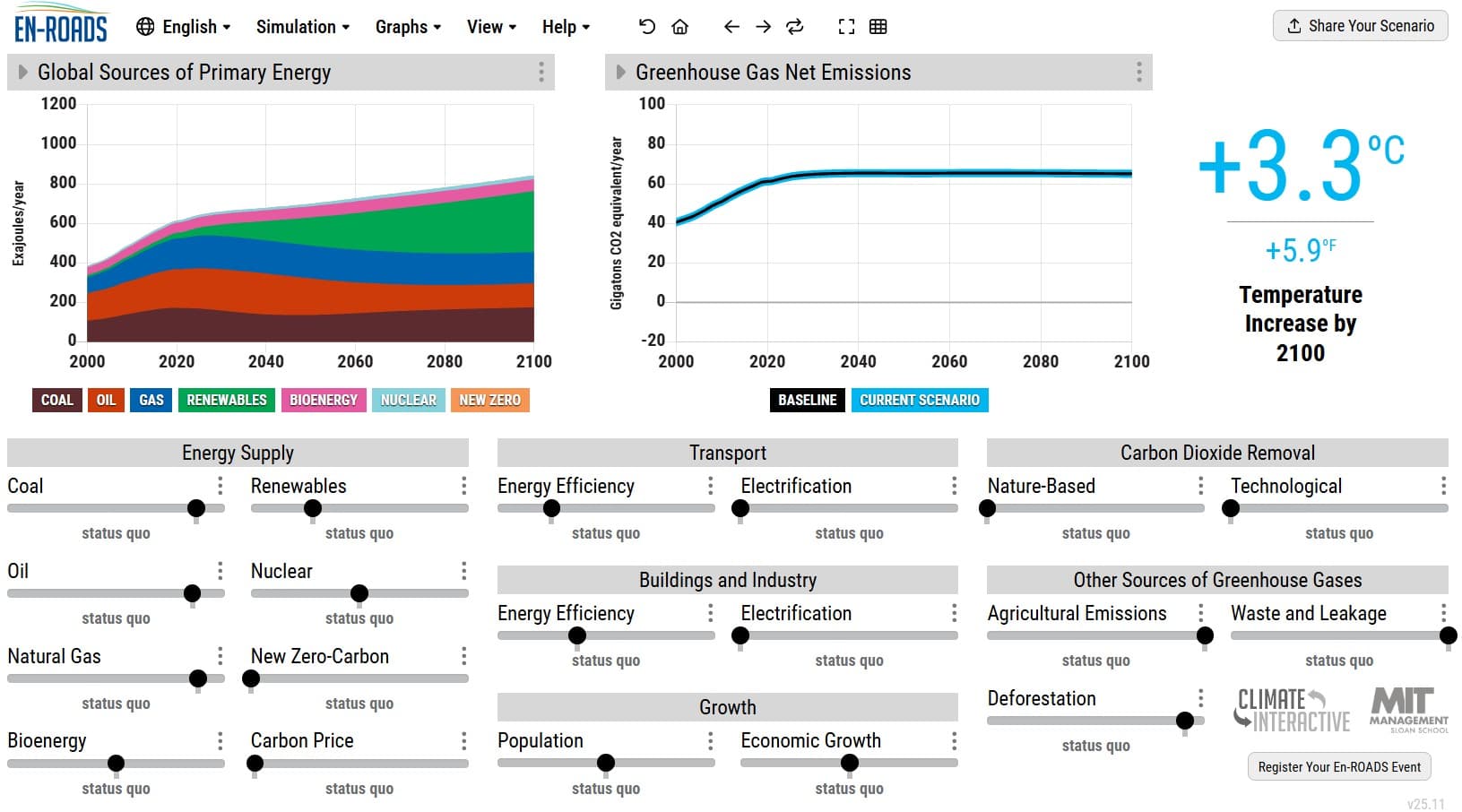 The En-ROADS tool lets you role-play as a global decision maker to explore the long-term effects of various policy ideas on climate. More than 341,000 people worldwide, including over 130 members of Congress, have used the simulation.