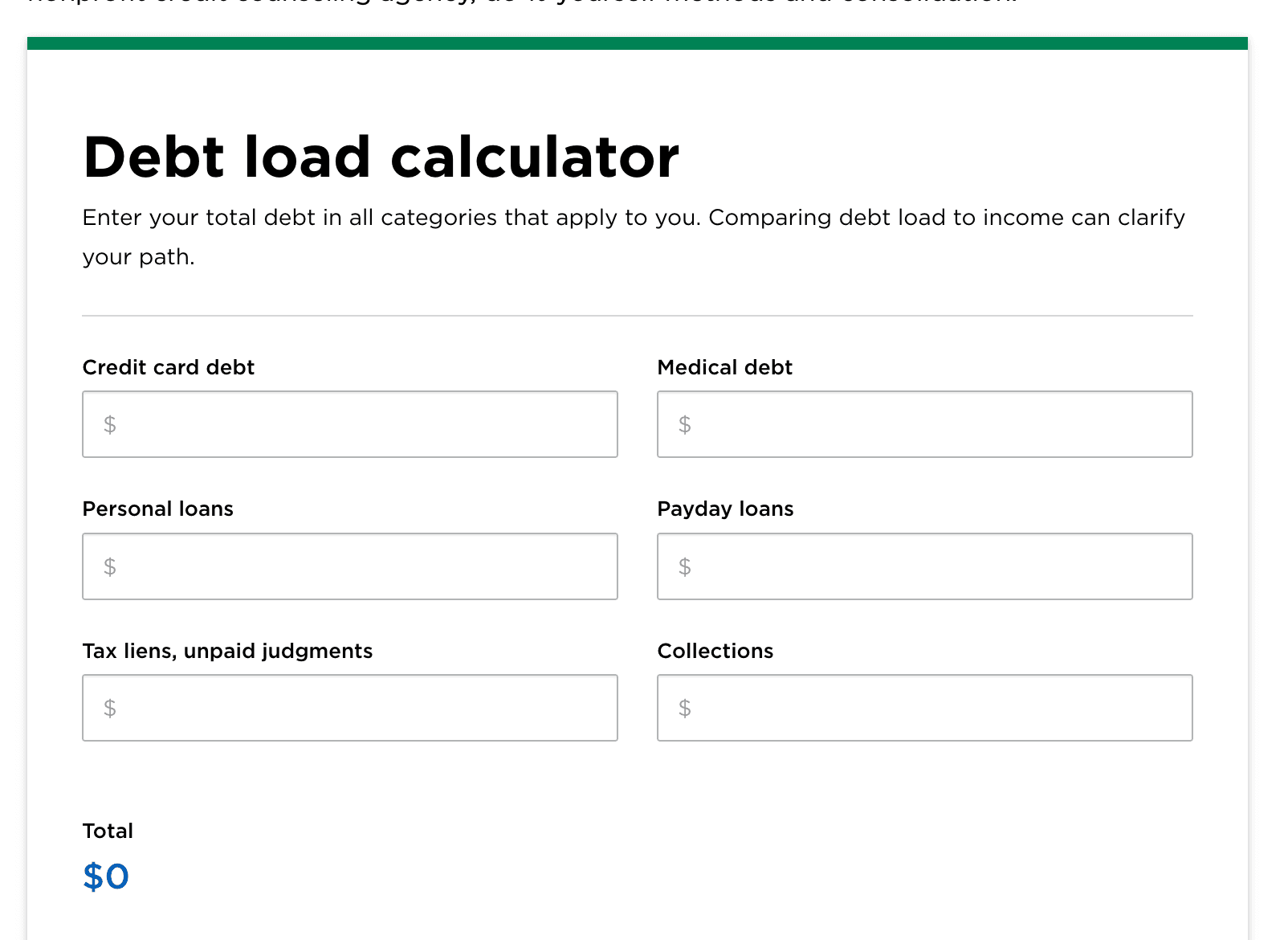 About 77% of American households had some debt at the end of 2023. However, when debt becomes crushing, it's time to consider a management plan or a bankruptcy filing. This calculator helps explore whether debt is manageable based on inputs like medical debt, payday loans, and gross annual income.