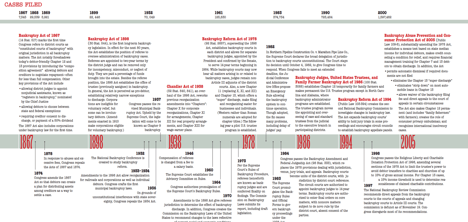 The most common types of bankruptcy filings are Chapter 7, Chapter 11, and Chapter 13