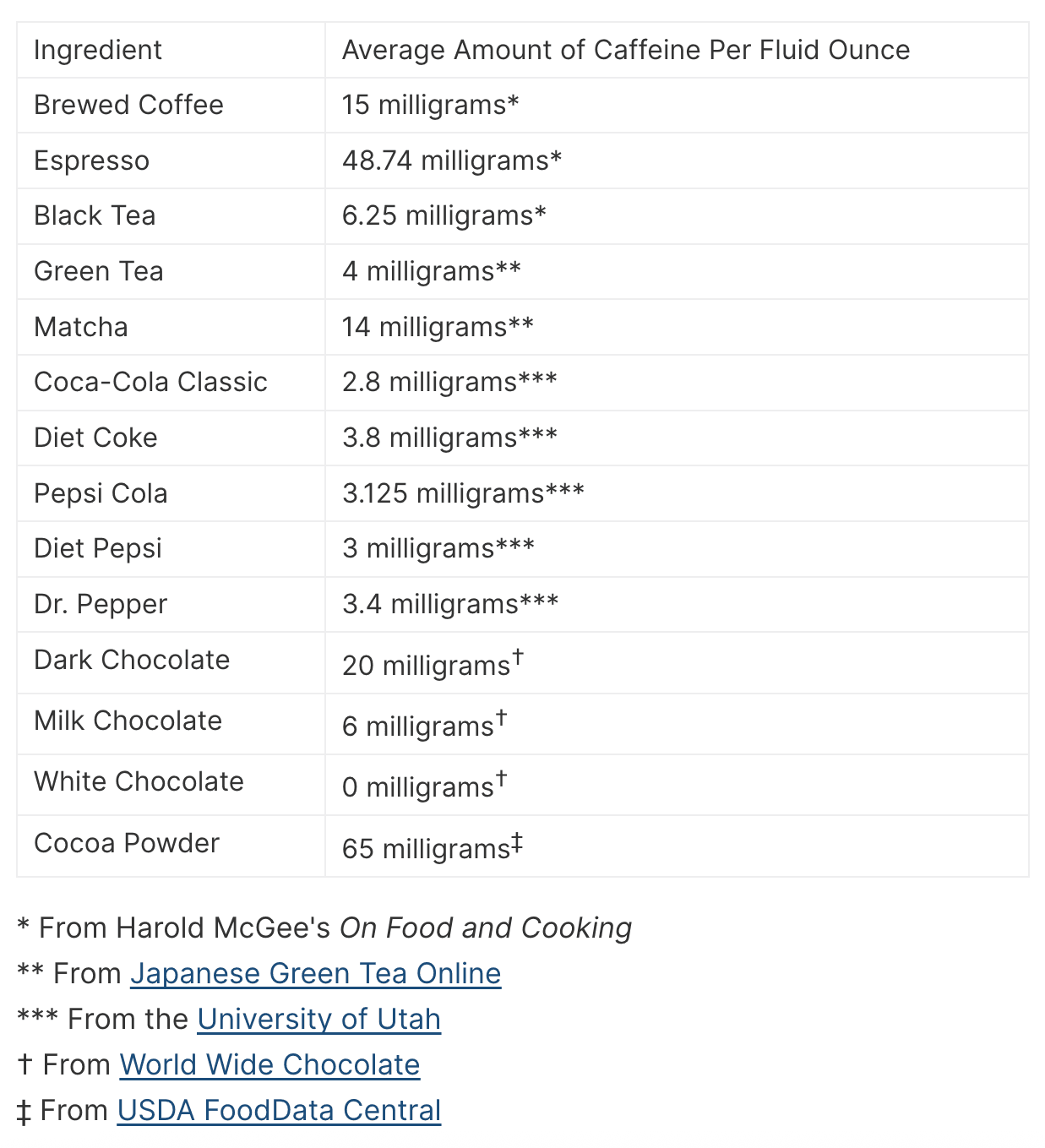 Coffee has three times the amount of caffeine contained in most caffeinated sodas, but significantly less than espresso and cocoa powder.