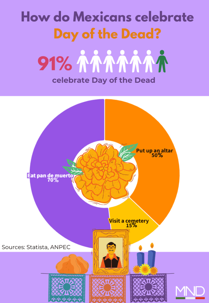 The average Mexican family spends more than $60 USD on celebration elements like flowers, candles, food, and decorations. The holiday also draws more than 2 million foreign tourists to join in the festivities.