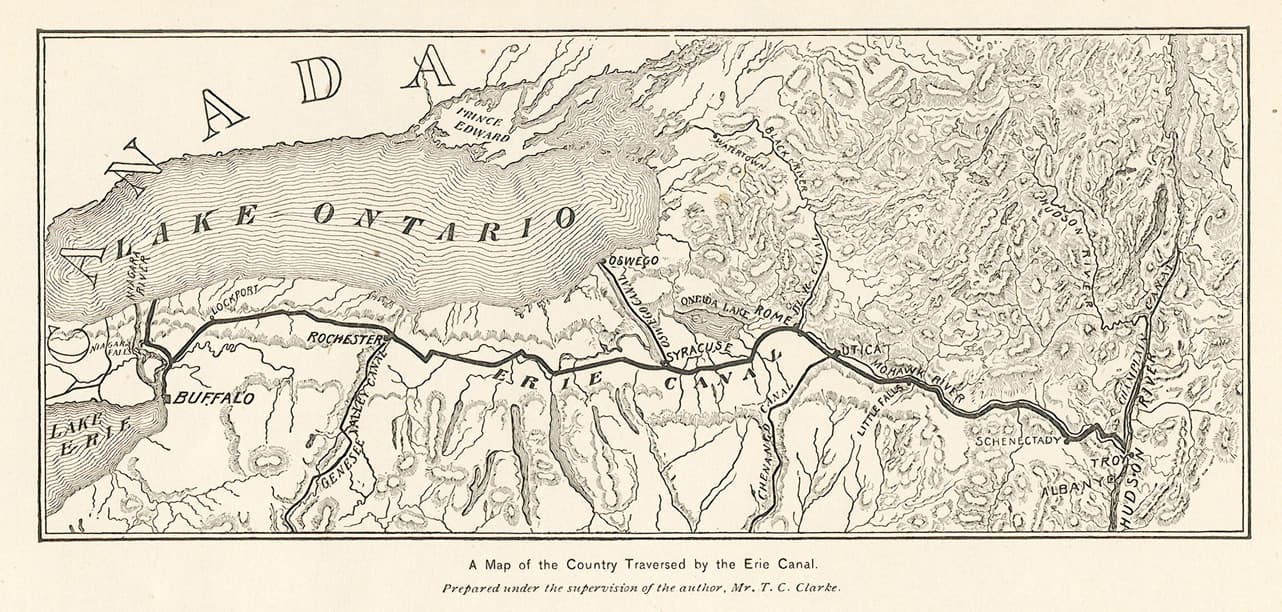 The Erie Canal runs 363 miles from Albany to Buffalo