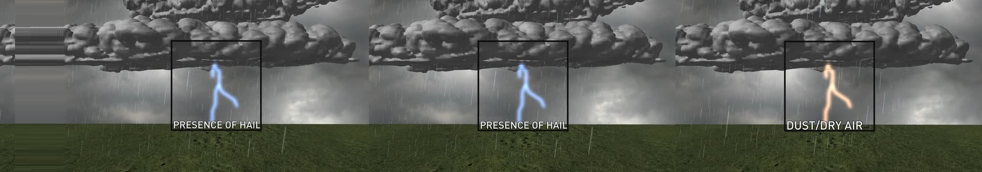 Within storm clouds, collisions between updrafts of water droplets and ice crystals and downdrafts of graupel—soft hail—transfer electrons from rising to descending matter. Positive and negative charge builds at the top and bottom of clouds, respectively, until the electric potential difference becomes stronger than the insulating properties of air. An electrical discharge between the regions produces lightning as electrons rush through the air like a static shock, restoring charge balance.