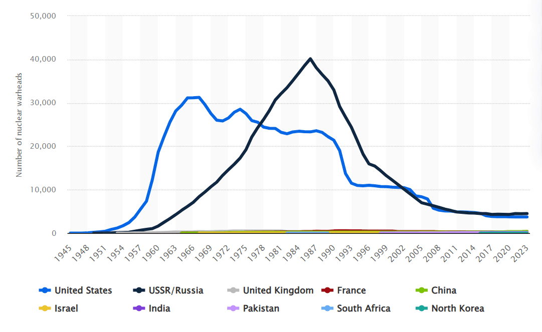 As of early 2026, the US and Russia together control about 86% of the world's more than 12,000 nuclear warheads—over 9,600 in military stockpiles. None of the seven other nuclear nations holds more than 600.