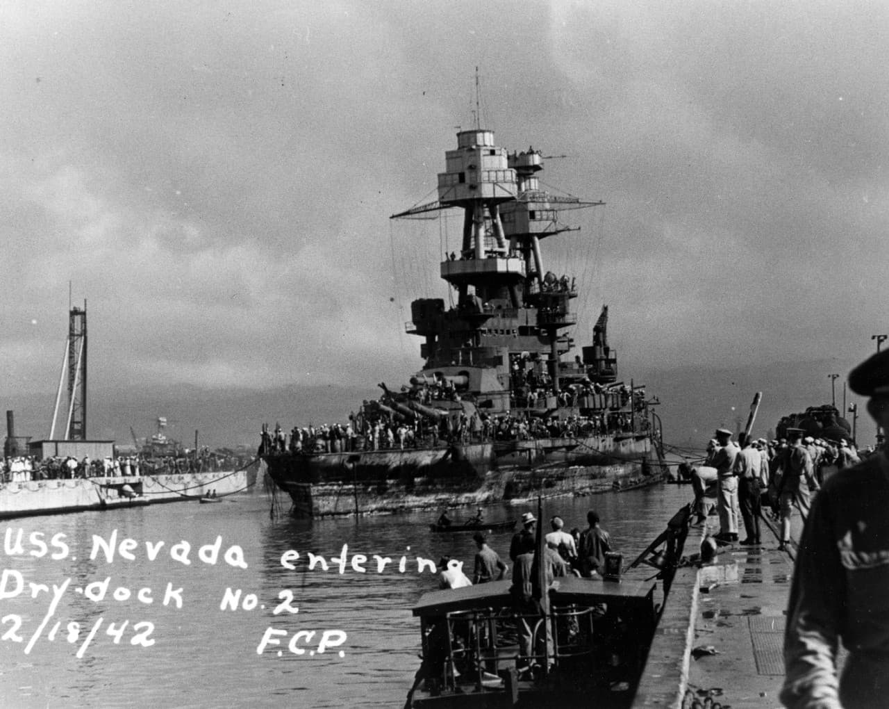 Badly damaged at Pearl Harbor, the USS Nevada was raised by February 1942 after extensive salvage work. Repaired and modernized, it returned to action and bombarded German defenses during the D-Day landings.