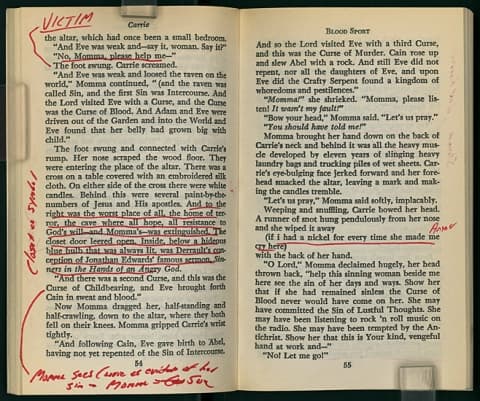 David Foster Wallace was one of the most acclaimed American writers of the 1990s and early 2000s, releasing dense, philosophically informed works of literary fiction. When the syllabus for an undergraduate literature course he taught surfaced through his archives at the University of Texas, many of his fans were surprised to find it included so much supposedly commercial fiction, including Stephen King’s “Carrie.” Below are his annotations on two pages of the novel.