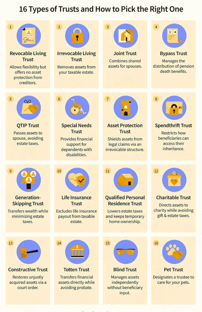 Explore a visual of 16 different types of trusts